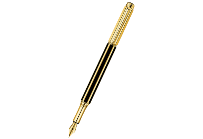 The joyful silhouette of the Pig appears on a glossy black Chinese lacquer background, patiently applied layer after layer, according to ancestral tradition. The delicately engraved design presents the animal in a joyful position, surrounding the body of the writing instrument with its friendly smile facing the observer. The lines and swirls in hot gold foil that define its shape leap forth from the black Chinese lacquer to create the noblest of contrasts.
