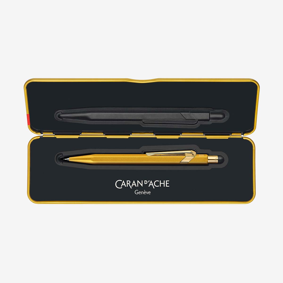 “Matching metal push button with eraser and integrated ? 0.7 mm lead reservoir at the back, accessible by removing the push button”