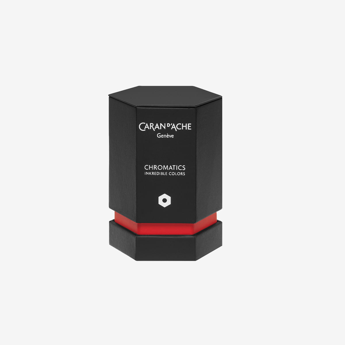 Ink bottle branded with Caran d’Ache logo and colour’s name