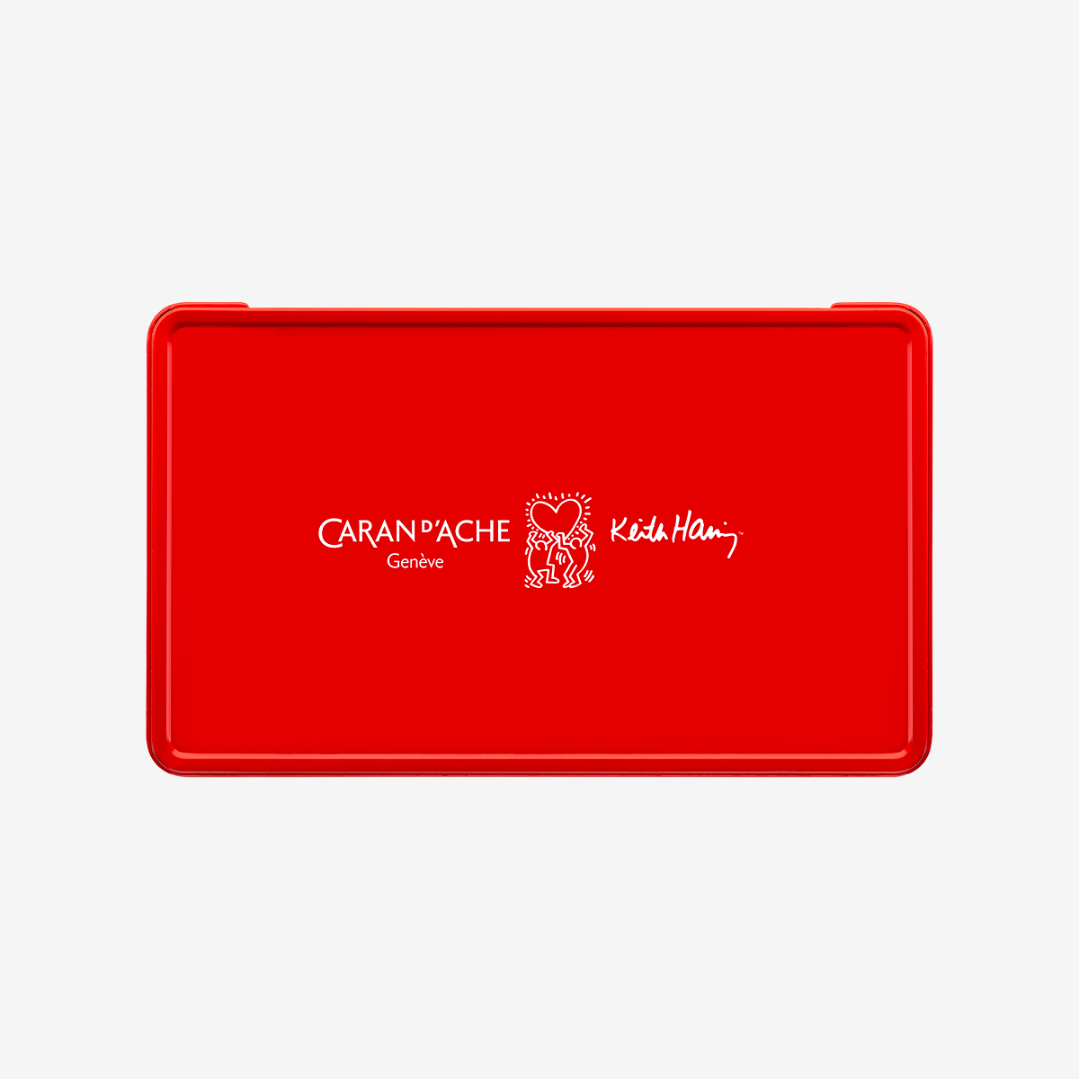 Collector’s red metal box printed with the co-branding logo and sleeve decorated with the collection’s identity