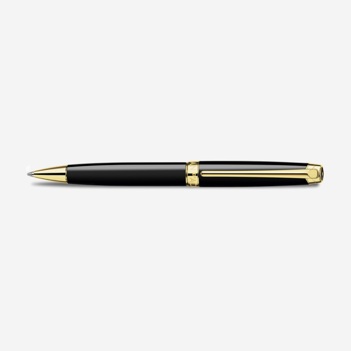 “Precious and refined, the black lacquer gets its sheen from the body of the Léman™ Ebony Black. Its body and cap, lacquered in deep black, match the gold-plated finish perfectly. Fine point roller cartridge or medium or fine point fibre cartridge. The Léman™ Ebony Black roller pen offers you excellence with finesse.”