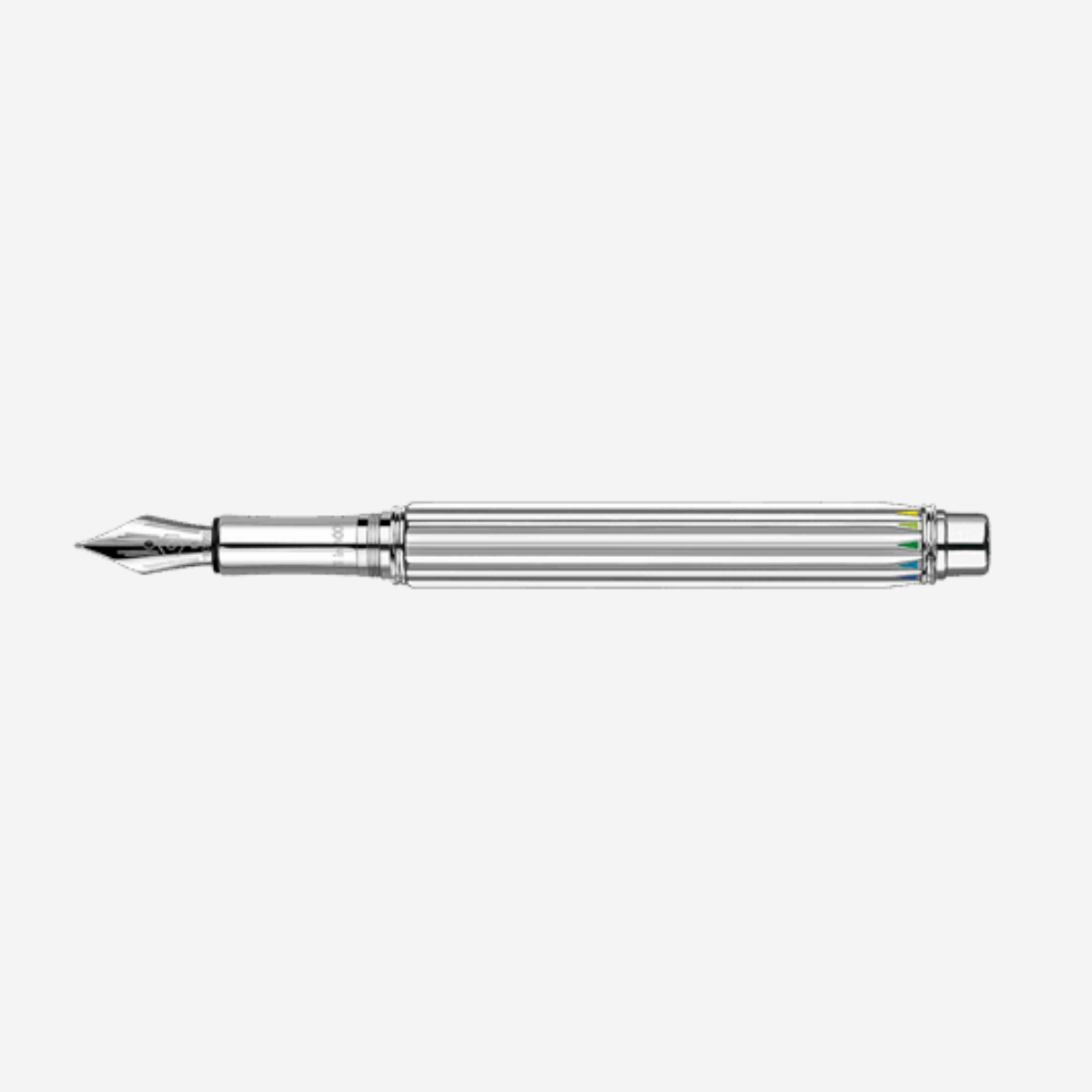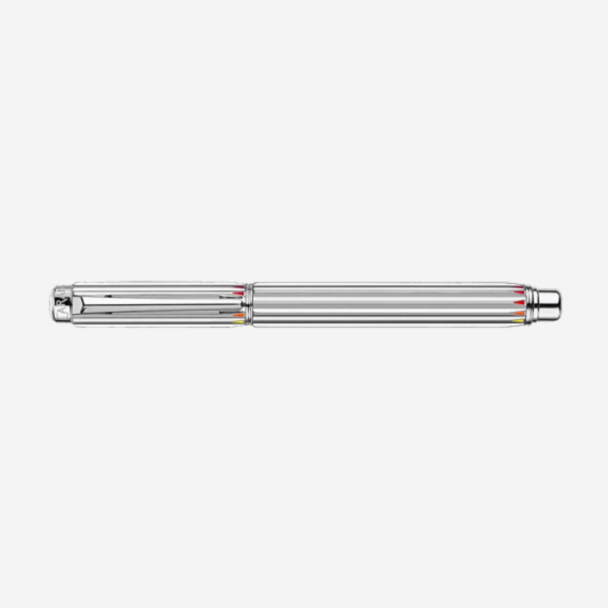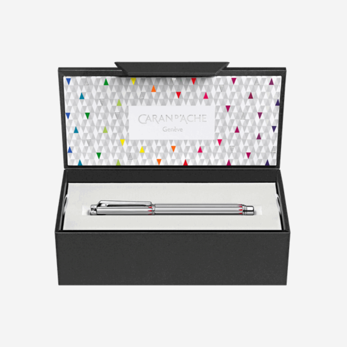 Silver-plated rhodium-coated Caran d’Ache logo laser-engraved on the buttons