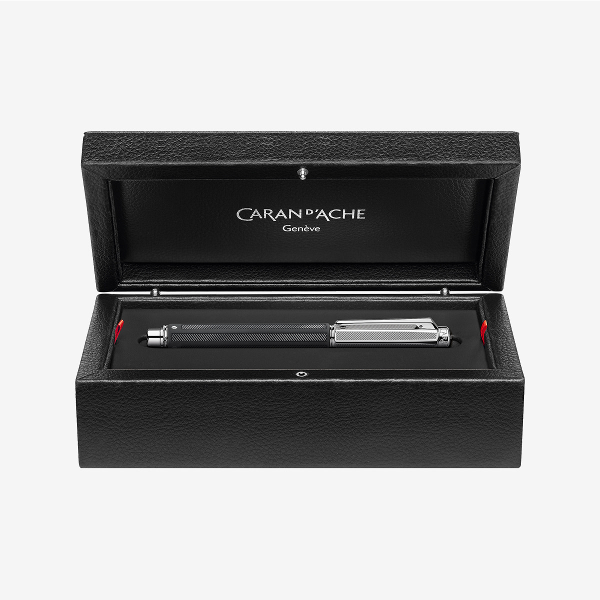 “While rubber has long been associated with the world of motor racing, its noble qualities have made it a favourite material in Fine Watchmaking. Supple and waterproof, it also offers valuable strength and elasticity. This daring new design by Caran d’Ache is a subtle blend of technology and design.”