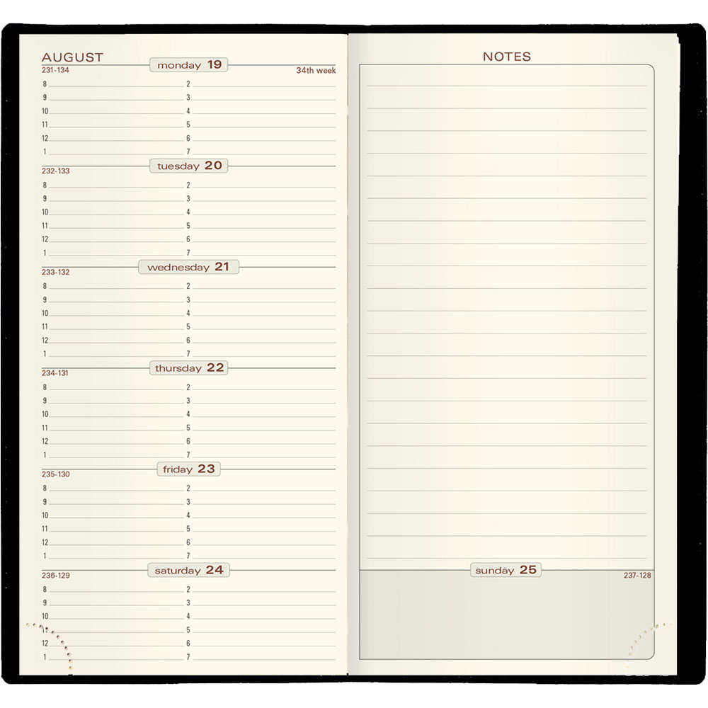 - Weekly appointments on left; full page for notes and reminders on right